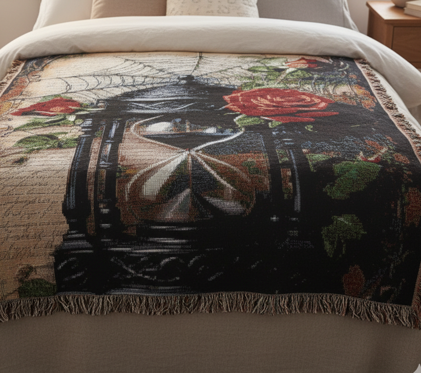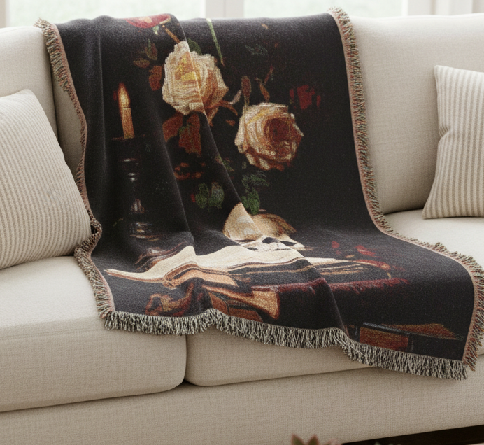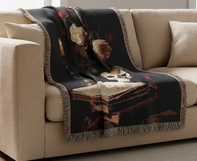 Absolutely obsessed with this blanket 🕯️📚 It feels cozy but also looks like a piece of art in my room. Perfect Dark Academia vibes!